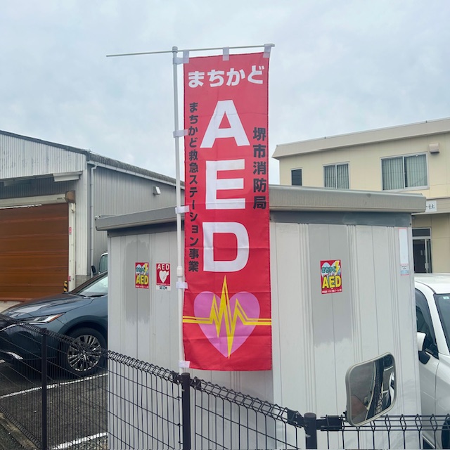 大阪太平商事では安全対策の一環としてAED(自動体外式除細動器)を社内に設置しております。